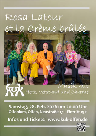 Nach einigen Jahren in selbstgewählter Einsamkeit mit ihrem Soloprogramm „8 femmes“ hat sich Rosa Latour für ihr neues Soloprogramm „Roswitha“ Mitstreiterinnen gesucht und sich dabei auf alte Weggefährtinnen besonnen.